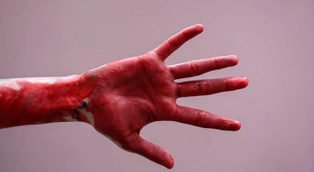 Sangue nas mãos: sinal de culpa e responsabilidade